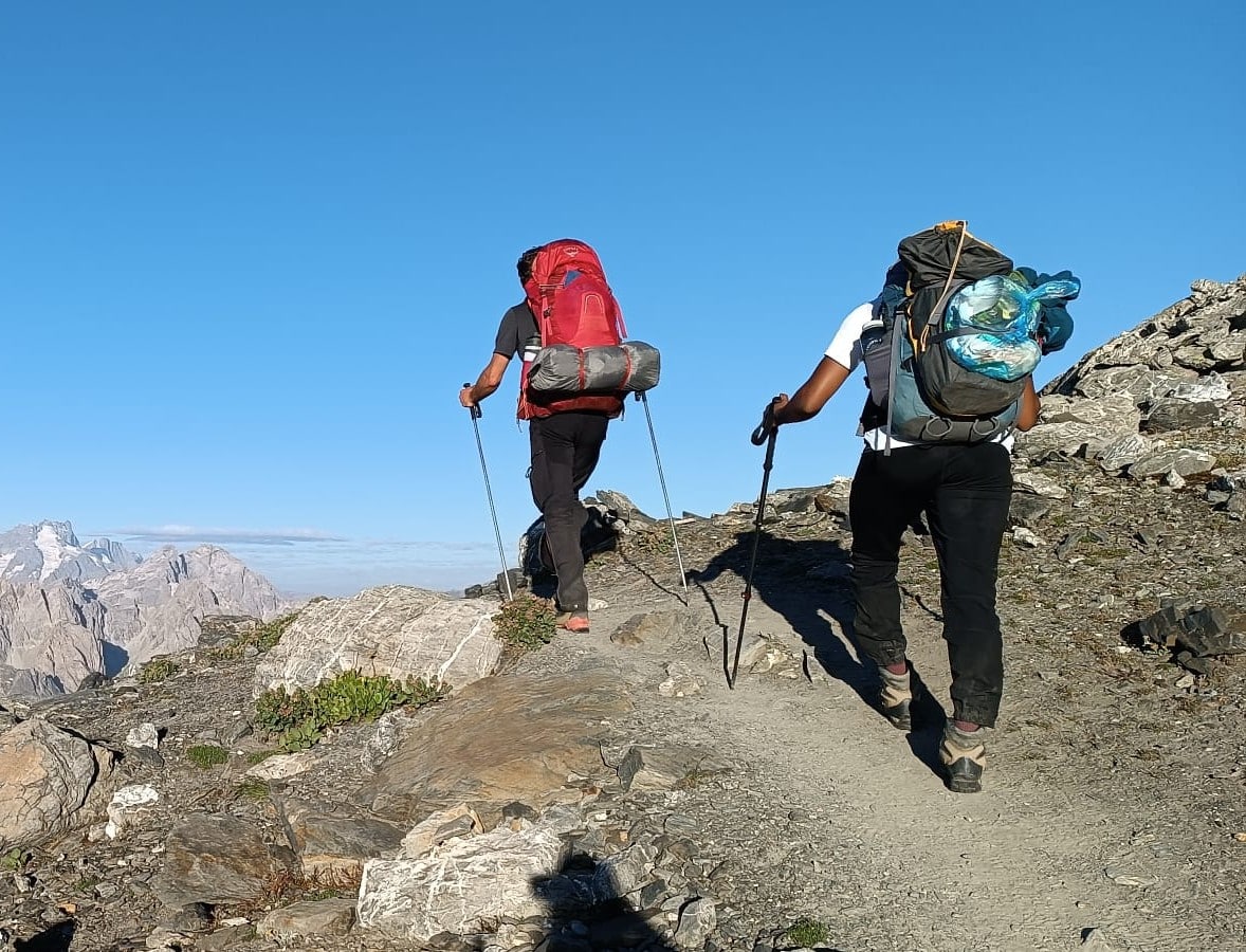 Alors là on ne se pose plus la question, c’est les grosses chaussures accompagnées d’une paire de bâtons. Le sentier à tendance à s’élever, devenir plus technique et parfois prendre de l’altitude. Tu grimpes sur un chemin en lacet, tu passes un col, tu redescends dans une vallée et parfois, tu te mouilles les pieds au passage d’une rivière. Et si tu aimes vraiment ça, tu enchaînes les journées et tu deviens un « trekkeur » ! Peu importe la durée, l’objectif est toujours le même, en prendre plein les mirettes.